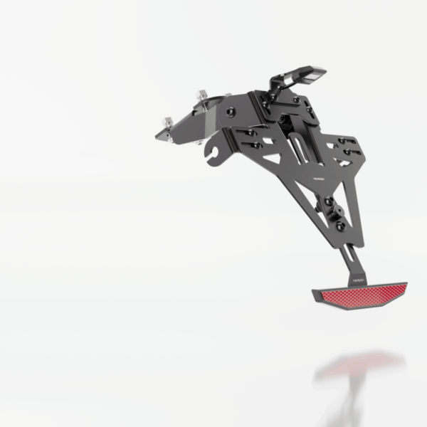 In dieser PRO Version des HIGHSIDER AKRON-RS ist die sehr kleine, aus hochwertigem Aluminium gefräste HIGHSIDER-Kennzeichenleuchte mit Montageplatte und Trägerarm enthalten. Die Halterung ist in der Höhe einstellbar und so gestaltet, dass eine Montage in der gesetzlich vorgeschriebenen Position möglich ist.