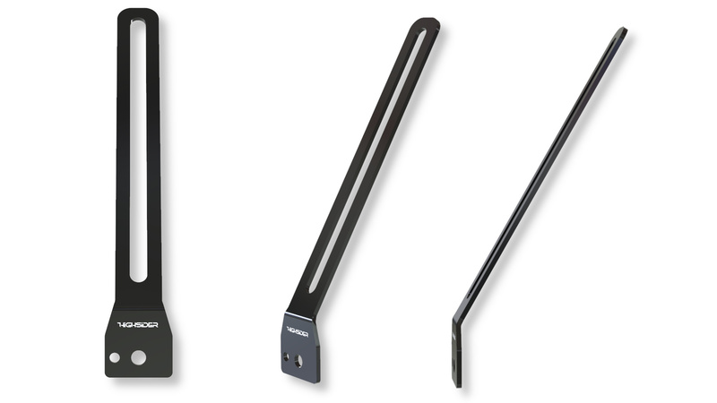 Schwarzer Halter aus Stahl mit HIGHSIDER Logo zur direkten Montage diverser Rückstrahler an unseren HIGHSIDER AKRON-RS Kennezeichenhalter.