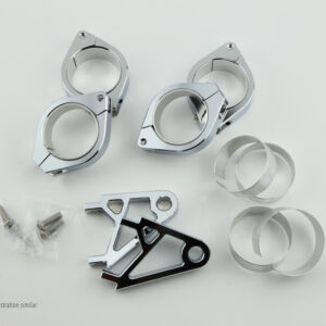 Das Set besteht aus 2 Schellen (Art.-Nr. 207-402) und 2 Blinkerhalter (Art.-Nr. 220-215), beides aus Aluminium in Schwarz oder Chrom erhältlich. Mit diesen Haltern können Zubehörblinker mittels M8-Gewindebolzen an den Gabelstandrohren befestigt werden. Einfach über beiliegende Einlegestreifen anpassbar. Wählen Sie die gewünschte Größe aus.