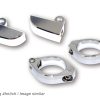 Das Set besteht aus 2 Schellen (Art.-Nr. 207-402) und 2 Blinkerhalter (Art.-Nr. 220-215), beides aus Aluminium in Schwarz oder Chrom erhältlich. Mit diesen Haltern können Zubehörblinker mittels M8-Gewindebolzen an den Gabelstandrohren befestigt werden. Einfach über beiliegende Einlegestreifen anpassbar. Wählen Sie die gewünschte Größe aus.