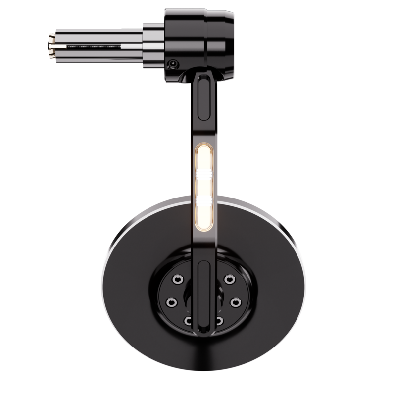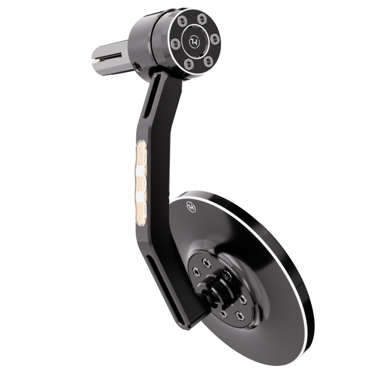 Dieser LED Lenkerendenspiegel wird mit unserem neu entwickelten HIGHSIDER pro Klemmsystem befestigt.