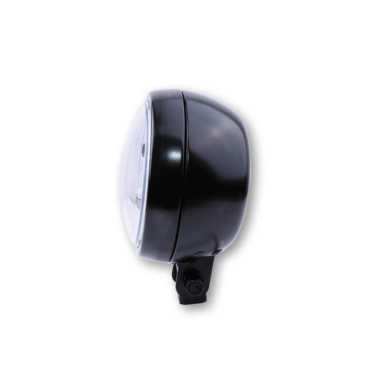 Mit seinem kompakten 4 3/4 Zoll Maß macht der LED Scheinwerfer FLAT TYP 9 eine gute Figur an deinem Bike. Klein aber dennoch robust. Leistungsstarke LED Technik solide verpackt im Stahlgehäuse mit runder Form und flacher Rückseite. Geprüfter Hauptscheinwerfer mit Fern-, Abblend-, und Standlichtfunktion. Unten befindet sich das Abblendlicht und oben das Fernlicht. Das LED Standlicht ist ringförmig und umschließt den Reflektor und bildet einen Lichtkranz. Den FLAT TYP 9 gibt es wahlweise mit Befestigungspunkten unten oder seitlich und in verschiedenen Farben.