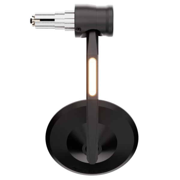 Die neuen Details des aufgefrischten Produkts zeigen sich erst auf den zweiten Blick. Das – Bar end System – wurde markanter gestaltet und ist für ein noch individuelleres Auftreten, optional erweiterbar mit dem Design Cap1 aus gleichem Hause. Das überarbeitete Spiegelarm-Design mit volleingelassenem Blinker steht nun noch selbstbewusster im Wind. Das matt-schwarze, eloxierte Aluminium, fein perlengestrahlt, unterstreicht den wertigen Look.