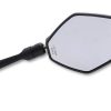 Lenkerspiegel in schwarz oder aus verchromtem Aluminium mit konvexem Glas und verstellbarem Stiel. Dank der Verwendung eines zweiten Gelenks am Stiel ergeben sich zusätzliche Einstellmöglichkeiten für deine Sicherheit. Inklusive extra Adapter M10 x 1,25 mm mit Linksgewinde für Yamaha. Für linke und rechte Seite verwendbar, E-geprüft.