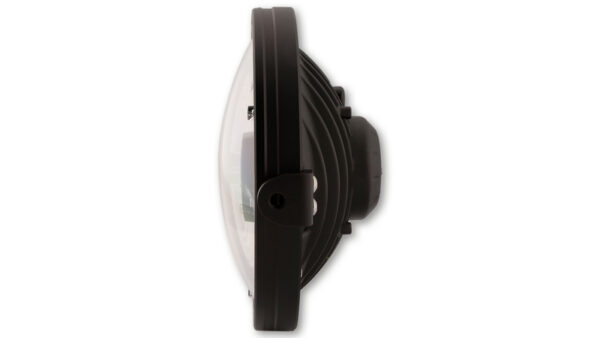 7 Zoll LED Hauptscheinwerfer TYP 3 mit Standlicht Funktion, rund mit verchromtem Reflektor, schwarzer Blende und klarem Glas, E-geprüft. Erhältlich mit seitlicher und unterer Befestigung.