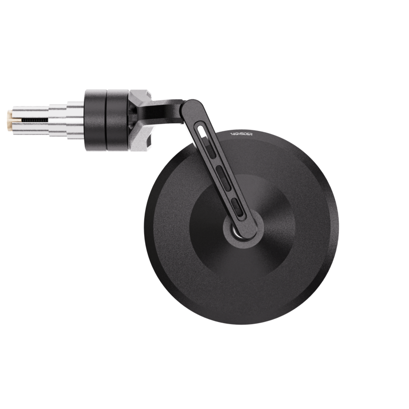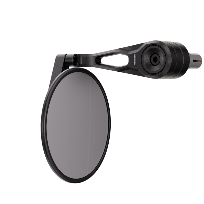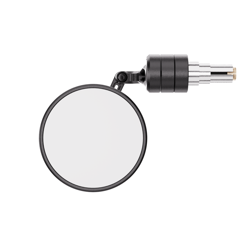 Der hochwertige Lenkerendenspiegel überzeugt mit einem Spiegelkopf aus schwarz, fein perlengestrahlten eloxiertem Aluminium. Der präzise CNC-gefertigte Spiegel mit einem zeitlosen Design, in der klassischen runden Form – überzeugt durch sein klares Auftreten.