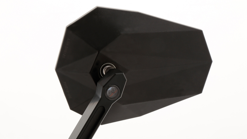 Das charakteristische Stealth Design, bekannt aus der militärischen Tarnkappentechnik, zeichnet diesen formschönen und hochwertig gearbeiteten Spiegel aus. Kombiniert mit der Farbe matt schwarz hat der Spiegelkopf aus wertigem Kunststoff mit seinen eckigen Elementen eine markante Ausstrahlung.