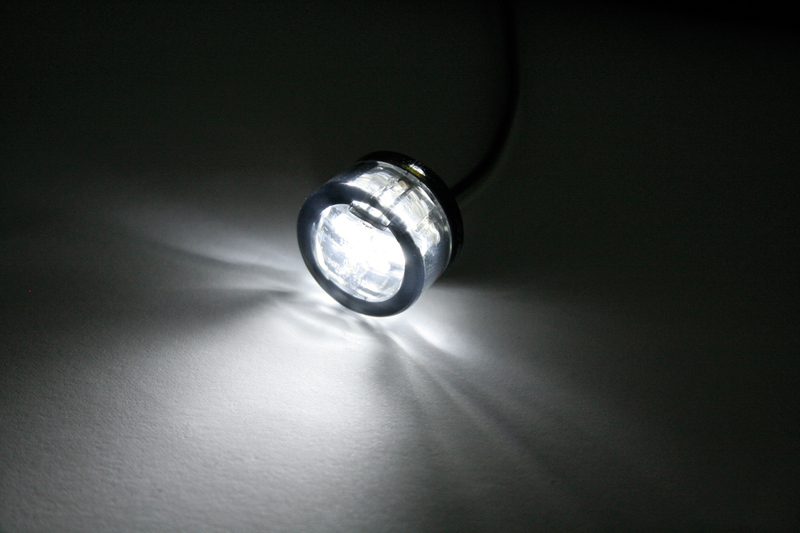 Sehr unauffälliger und getönter Korpus aus Kunststoff. Ein helles LED-Standlicht geeignet zum Einlaminieren oder zum Einkleben, E-geprüft.