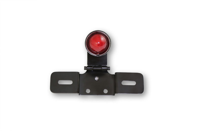 LED-Rücklicht mit klassischem Design aber neuster Lichttechnik in Kombination mit verstellbarem Nummernschildhalter.