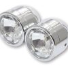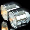 Hauptscheinwerfer-Set mit Standlicht und verchromten oder schwarzem Metallgehäuse mit seitlicher Befestigung, E-geprüft.