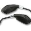 Sportlich geschnittener Lenkerspiegel in Schwarz. Aufgrund der großen Spiegelfläche bietet das Modell eine gute Sicht nach hinten, E-geprüft.