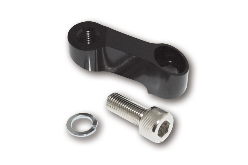 Schwarze Spiegelverlängerung aus Aluminium. Passend für Spiegel mit M10 x 1.25 mm Rechts- und Linksgewinde.