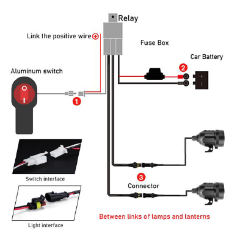 Ein beleuchteter Ein/Aus-Lichtschalter sorgt für einfache Bedienung bei allen Lichtverhältnissen. Mit einer eingebauten Stecksicherung bietet der Kabelbaum zusätzliche Sicherheit und unterstützt eine maximale Last von 60W pro Scheinwerfer.