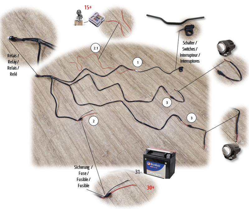 Entdecken Sie den HIGHSIDER TYP 160 Kabelbaum für Zusatzscheinwerfer, Ihre optimale Lösung zur Nachrüstung von LED oder Halogen Zusatzscheinwerfern auf Motorrädern.