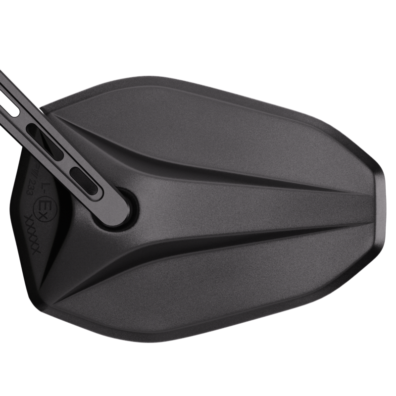 Sportliche Linien in einem perlgestrahlten schwarz seidenmatten Gewand. Diese ästhetische BLAST-Oberflächenoptik wirkt dezent edel. Durch die CNC gefräste Oberfläche wirkt der HIGHSIDER VICTORY-BLAST aus Aluminium mit seinem Typischen Design sehr modern und passt Optisch an viele Bike’s. Der Spiebelkopf wird bei dieser Variante von einem kurzen Spiegelarm getragen und ist mit drei sportiven Luftschlitzen versehen. Eine korrosionsbeständige Edelstahl-Kugelklemmung am Spiegelkopf sowie ein Gelenk an der Schelle ermöglichen Einstellungen für ideale Sicht. Durch das Gelenk an der Schelle kann der Spiegelkopf nach innen oder außen gerichtet werden. Rechts oder links sowie nach oben stehend oder nach unten hängend montierbar. Entweder mit den mitgelieferten Reduzierhülsen direkt am Lenkrohr oder an optional erhältlichen Lenkerenden mit Lenkerendenspiegelaufnahme. Mit einem Höchstmaß an Qualität und Funktionalität kannst du dein Bike mit dem Zubehör von HIGHSIDER ganz einfach nach deinem Wunsch gestalten. Die fein perlgestrahlte, schwarz seidenmatte Oberfläche lässt den Spiegel besonders dezent und edel wirken.