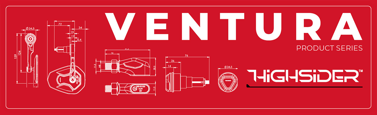 Futuristisch klare Linien, die sich bewusst von dem Gewohnten abheben, erzeugen ein modernes und zugleich markantes Erscheinungsbild, welches das Design der HIGHSIDER pro VENTURA Serie auszeichnet und damit den Charakter vieler moderner Motorräder vervollständigt. Entdecke VENTURA Lenkerenden, Spiegel und Blinker und finde Inspirationen für Projekte deiner Kunden.