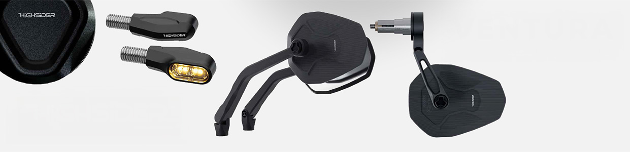 Futuristisch klare Linien, die sich bewusst von dem Gewohnten abheben, erzeugen ein modernes und zugleich markantes Erscheinungsbild, welches das Design der HIGHSIDER pro VENTURA Serie auszeichnet und damit den Charakter vieler moderner Motorräder vervollständigt. Entdecke VENTURA Lenkerenden, Spiegel und Blinker und finde Inspirationen für Projekte deiner Kunden.