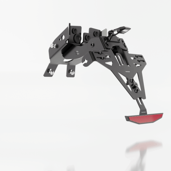 In dieser PRO Version des HIGHSIDER AKRON-RS ist die sehr kleine, aus hochwertigem Aluminium gefräste HIGHSIDER-Kennzeichenleuchte mit Montageplatte und Trägerarm enthalten. Die Halterung ist in der Höhe einstellbar und so gestaltet, dass eine Montage in der gesetzlich vorgeschriebenen Position möglich ist.