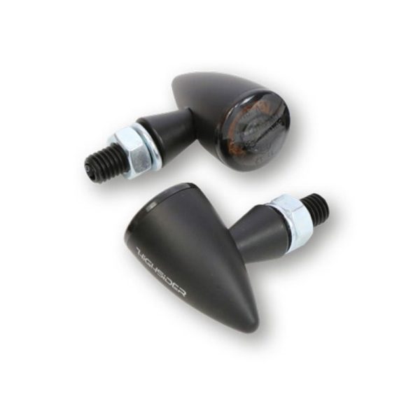 HIGHSIDER APOLLO BULLET LED Blinker/Positionsleuchte, schwarzes Alugehäuse, getöntes Glas, Paar, E-geprüft.
