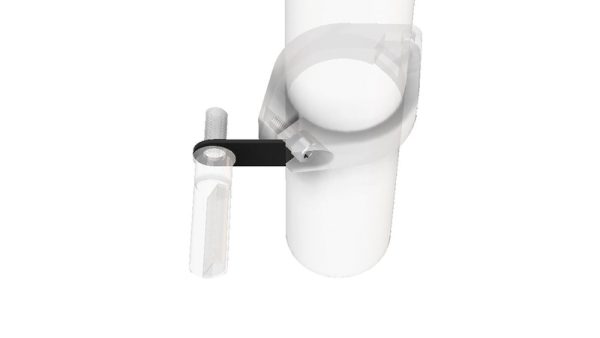 Schwarz eloxierter Halter aus Aluminium zur Montage von Blinkern an den CNC Alu Standrohrschellen, Art-Nr. 207-402 bis 207-419 (nicht im Lieferumfang enthalten).