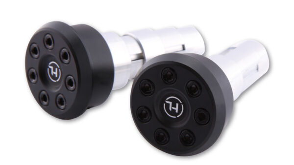 HIGHSIDER CONERO TYP 2 Lenkergewichte, Alu, für Lenkerendenspiegel mit Ø 30 mm, Paar. Erhällich in Schwarz glanz mit polierten Fasen oder als Schwarz matt gehaltene - BLACK EDITION -. Sonderpreis gültig, nur solange Vorrat reicht!