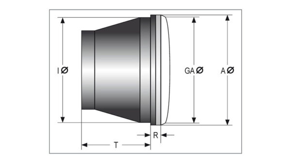 Durchmesser I = 131 mm, T = 43 mm, R = 12 mm
