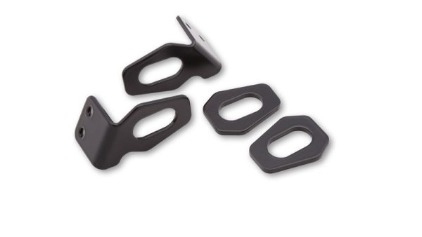 Mit diesem Blinker-Adapter aus schwarzem Aluminium können die originalen Blinker an unseren HIGHSIDER oder LSL Kennzeichenhaltern verwendet werden.