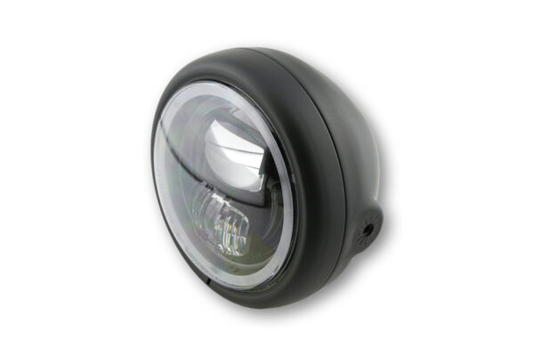 5 3/4 Zoll LED-Scheinwerfer PECOS TYP 7 mit Standlichtring, Gehäuse schwarz matt, Gehäuse-Ø: 165mm, Gehäuse-Tiefe: 135mm, E-geprüft.