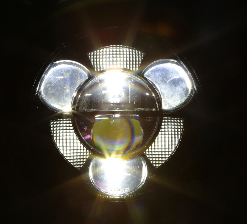 Mit dem puristischen Aluminiumring ist es erstmalig möglich, verschiedene LED-Scheinwerfereinsätzen frei stehend am Motorrad zu montieren. Durch den bewussten Verzicht auf ein Scheinwerfergehäuse wird eine unschlagbar enge Einbaulage ermöglicht und zusätzlich eine bessere Kühlung der LED-Einheit erzielt.