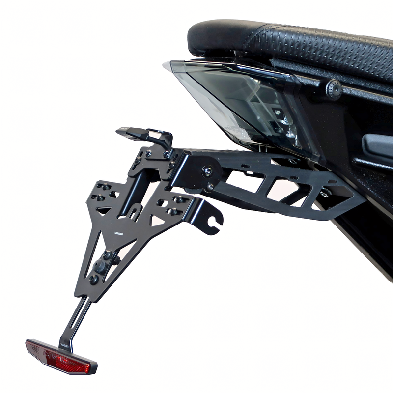 Der Kennzeichenhalter HIGHSIDER pro passt sich durch sein Design optimal an die Linienführung Deines Bikes an.