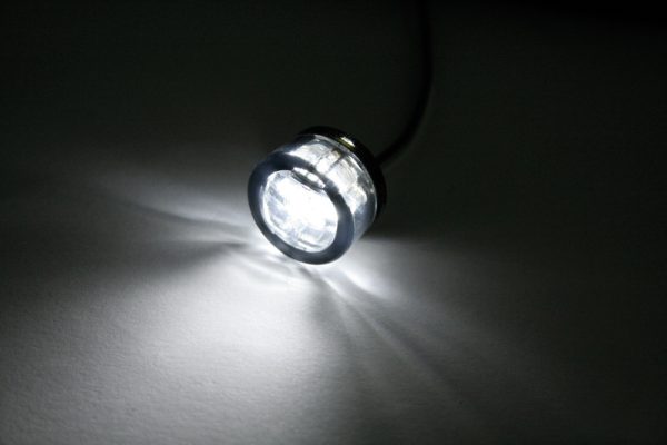 Sehr unauffälliger und getönter Korpus aus Kunststoff. Ein helles LED-Standlicht geeignet zum Einlaminieren oder zum Einkleben, E-geprüft.