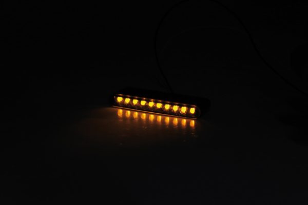 Das moderne Blinker Modul mit verbautem Lauflicht System ist zum Ein- oder Anbau geeignet. Zum Beispiel zum Einlaminieren, Einkleben oder andere Einbauvarianten in Verkleidungen. Die LED-Technik mit ihren vielen Einzellichtquellen macht es möglich: Wenn beim Blinken die einzelnen LEDs nacheinander aufleuchten, entsteht ein optischer Wischeffekt, eine Art Leuchtband von innen nach außen wie bei aktuellen PKW-Modellen. Der trendige Sequenz-Blinker mit robustem Kunststoffgehäuse und getöntem Glas ist ein echter Eyecatcher im Straßenverkehr.